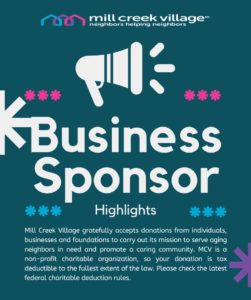 Since 2013, Mill Creek Village (MCV) has been a volunteer-led, nonprofit charitable community service organization dedicated to “Neighbors Helping Neighbors.” MCV provides services to help older residents (60 years of age and older) in the neighborhood of Mill Creek Towne in Derwood, Maryland to maintain their independence and remain in their homes as they age and confront medical challenges, physical incapacity, lack of mobility and loneliness.